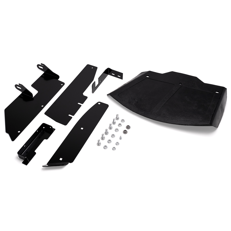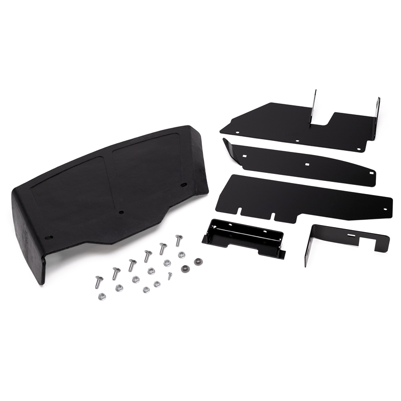 • Kit includes (1) rubber discharge chute, (1) mount bracket, (1) clamp plate, (1) deck plate, mounting hardware, and assembly instructions