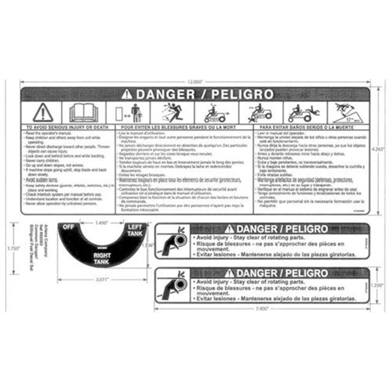 Replacement Set, Decal - Common Danger/fuel For Select Ariens Zero Turn Mowers